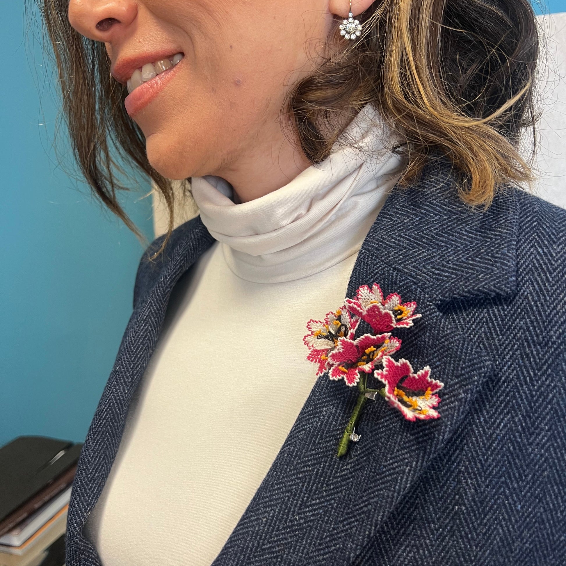 El yapımı Çiçek Broş, Anadolu’da nesilden nesile aktarılan zarif bir geleneğin izlerini taşır.