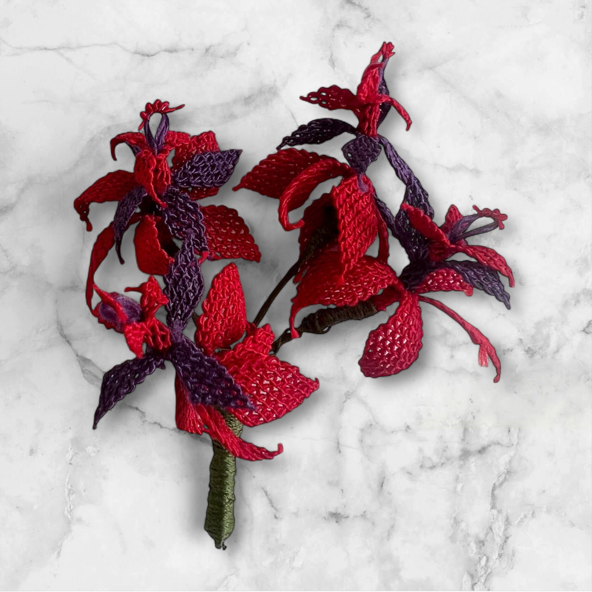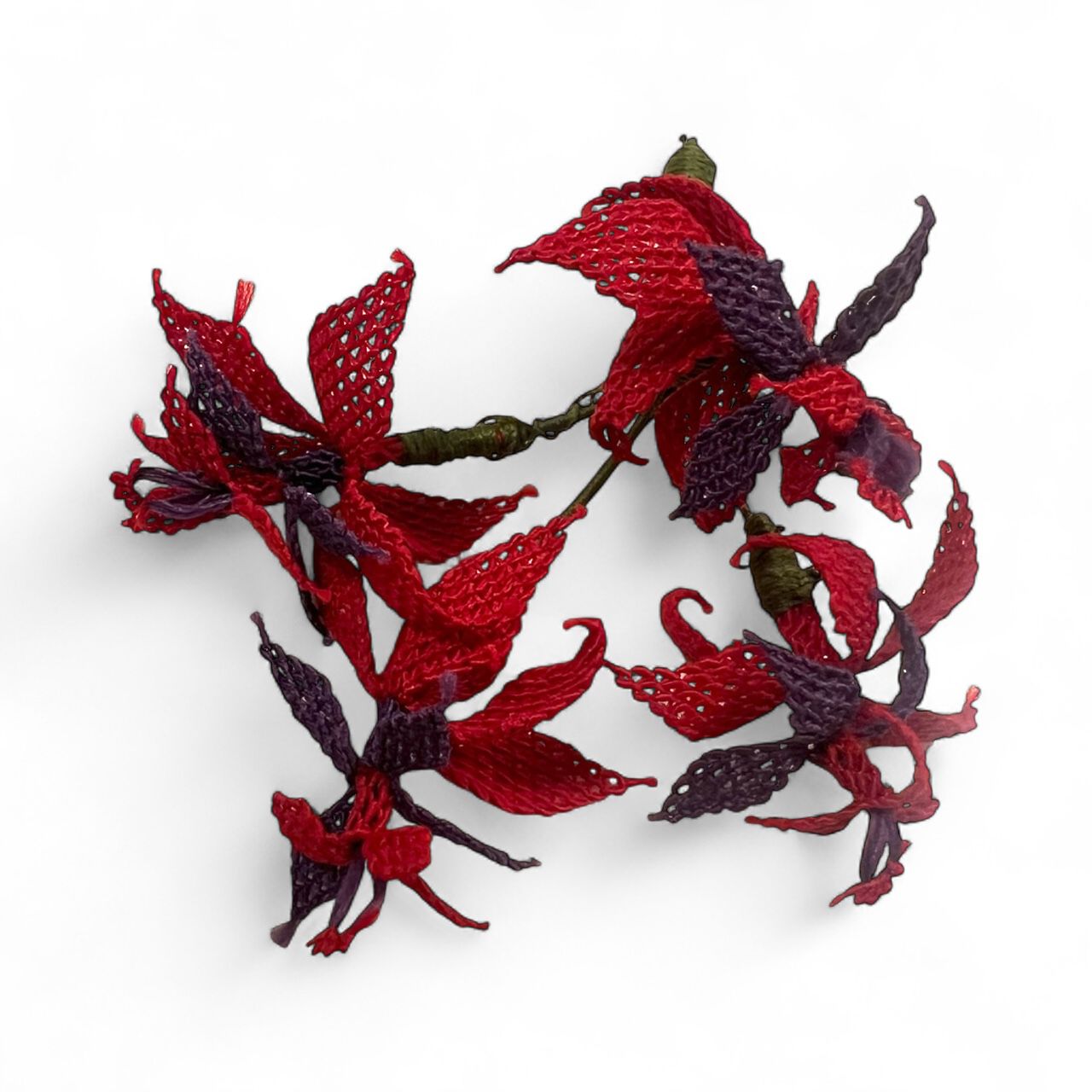 Kırmızı Çiçek Oya Broş