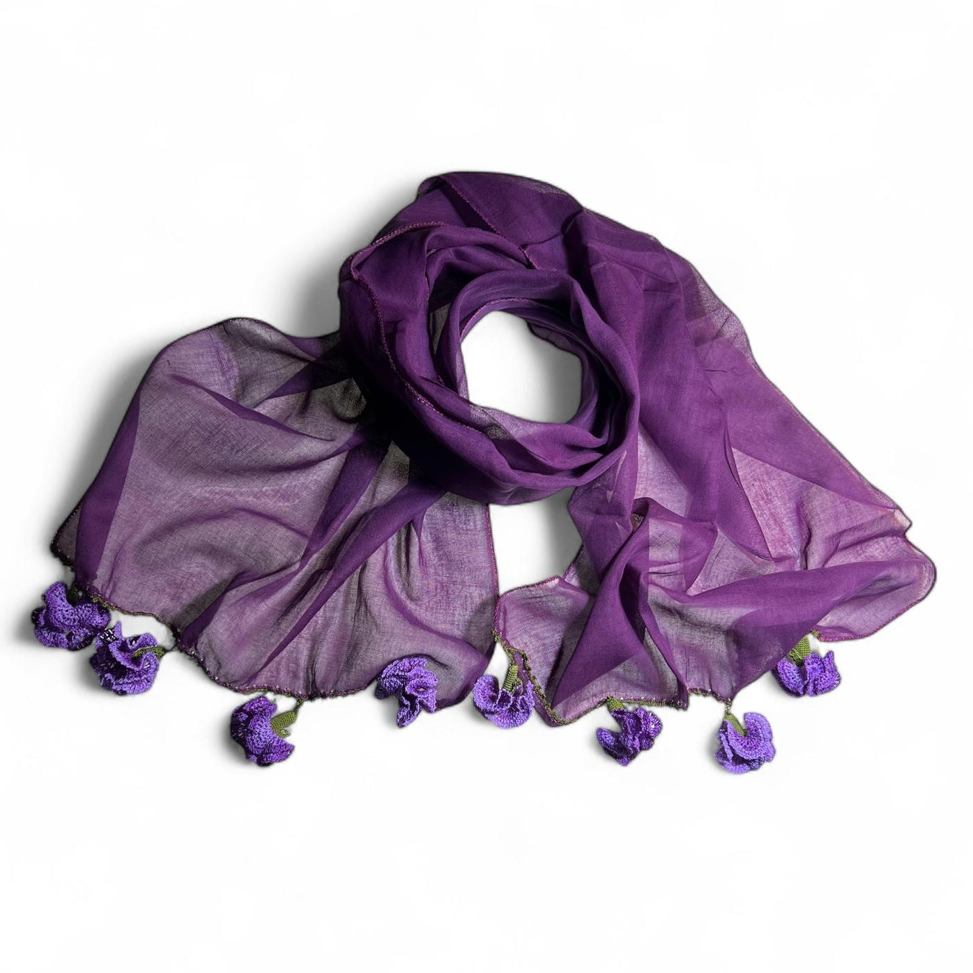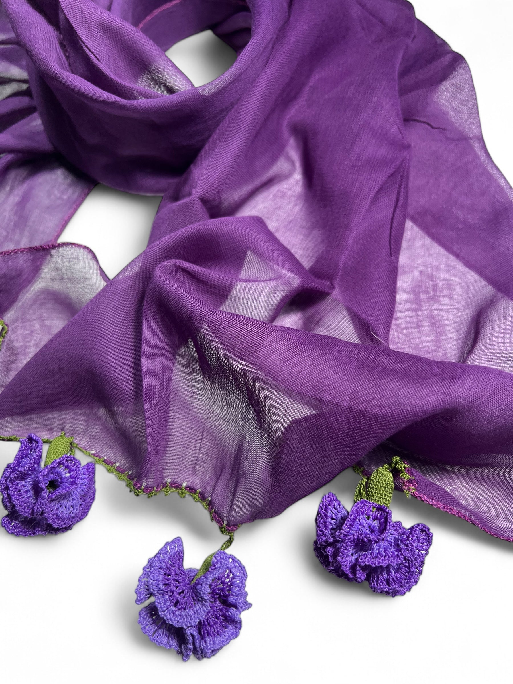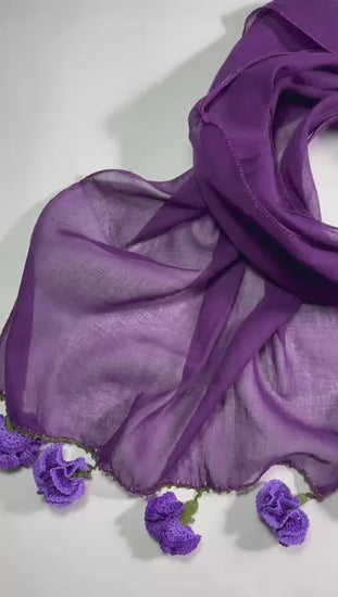 Mor Pamuklu Karanfil Oyalı Fular