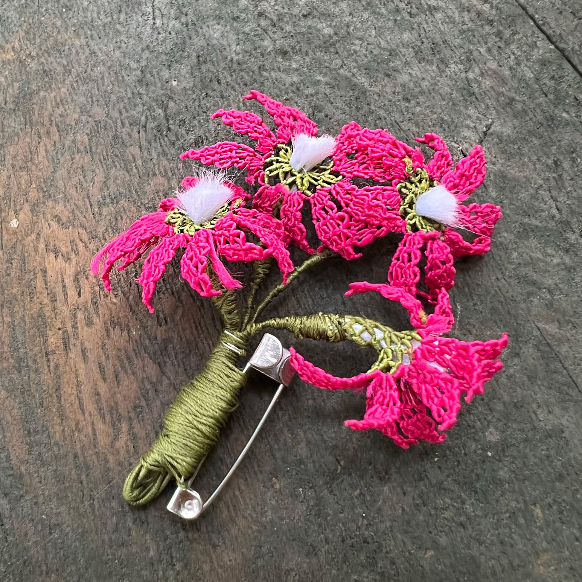 Çiçek oyalı broş