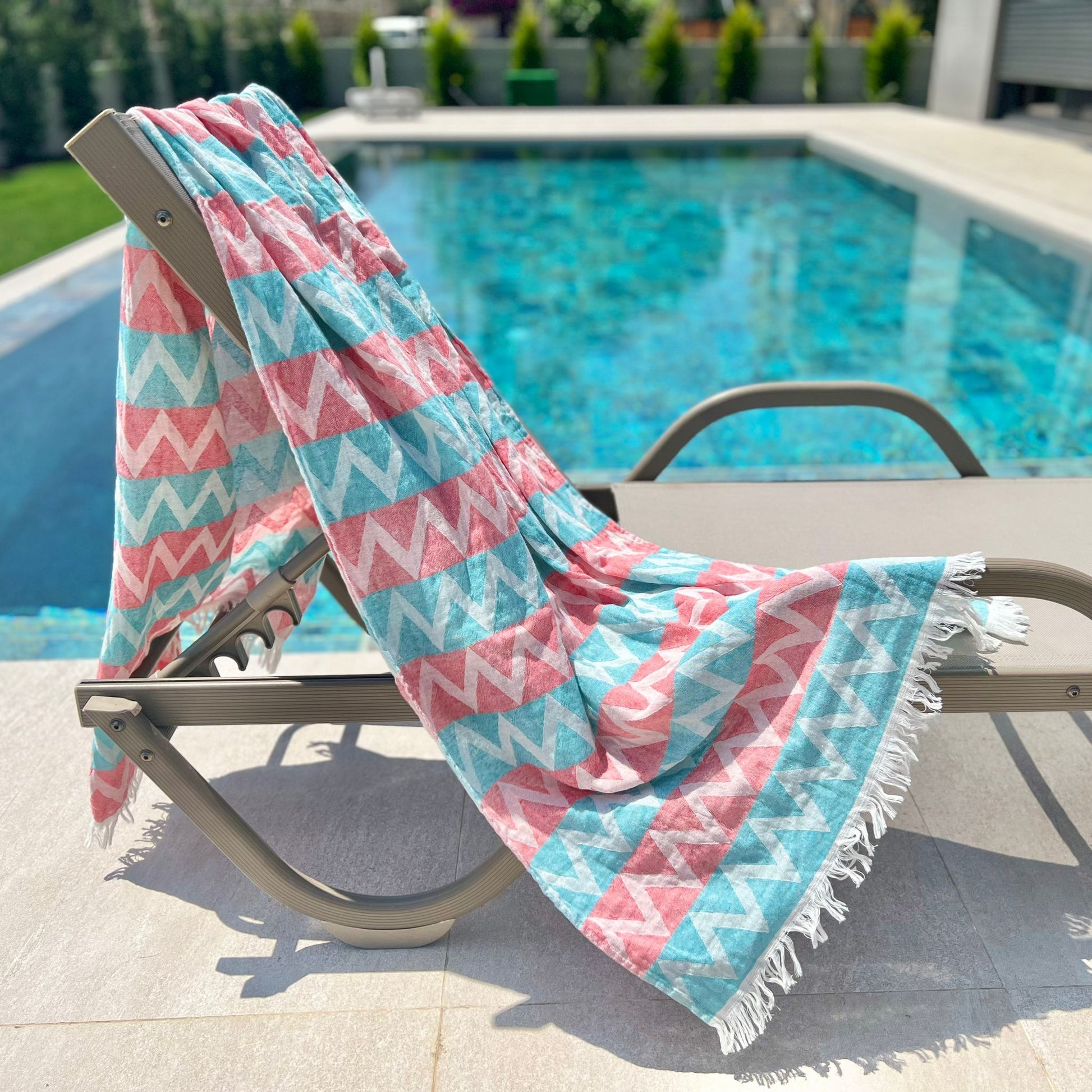 Renkli Peştemal Plaj Havlusu, plaj gezilerinizden, spa ziyaretlerinize, saunalardan havuz kenarındaki dinlenmelerinize ve hamam ziyaretlerinize kadar her türlü aktivite için çok kullanışlı bir üründür.
