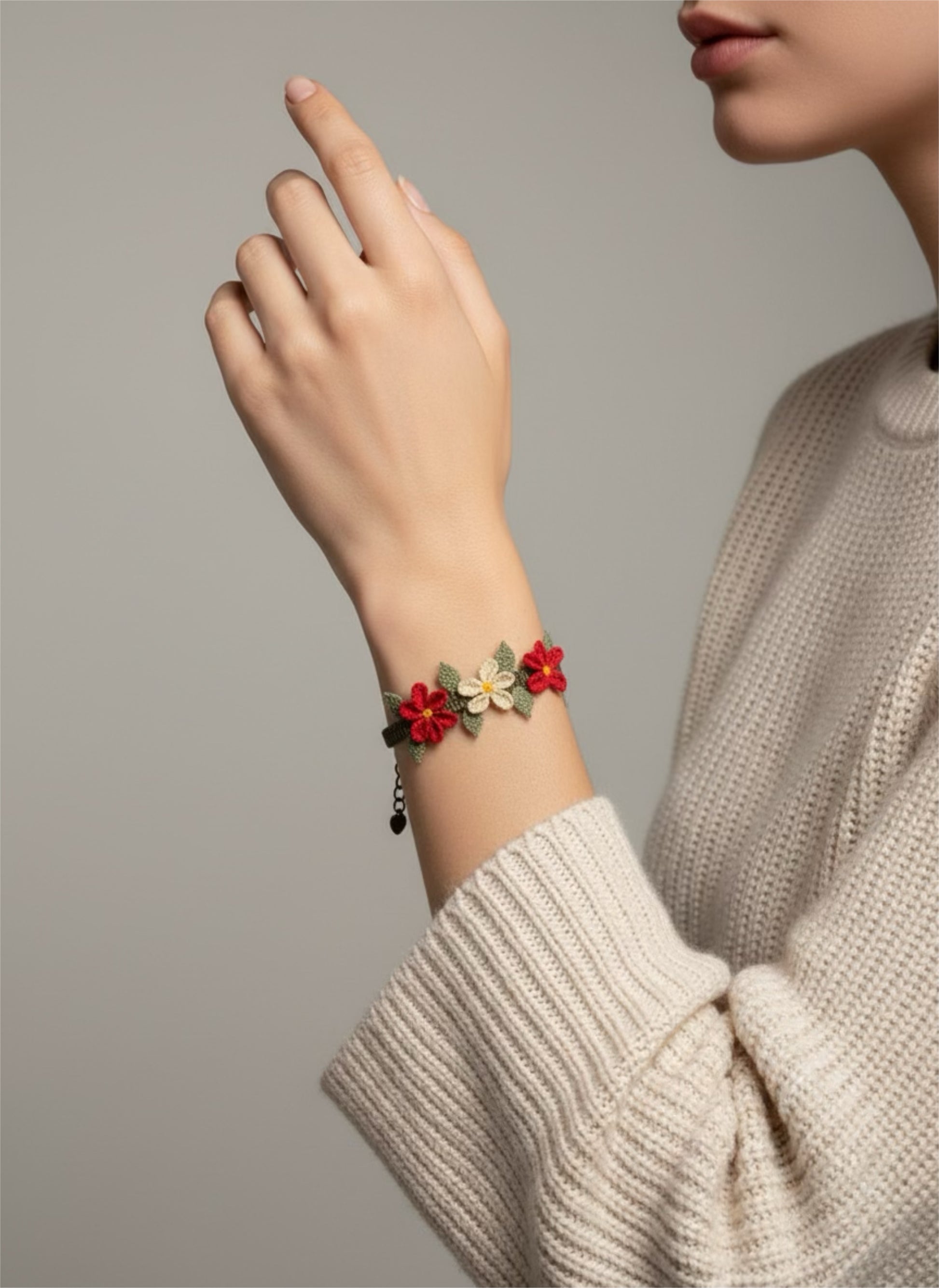 Bu iğne oyası çiçek figürlü bileklik, Anadolu'nun yetenekli kadınları tarafından büyük emek ve sabırla yapılan özel bir üründür.