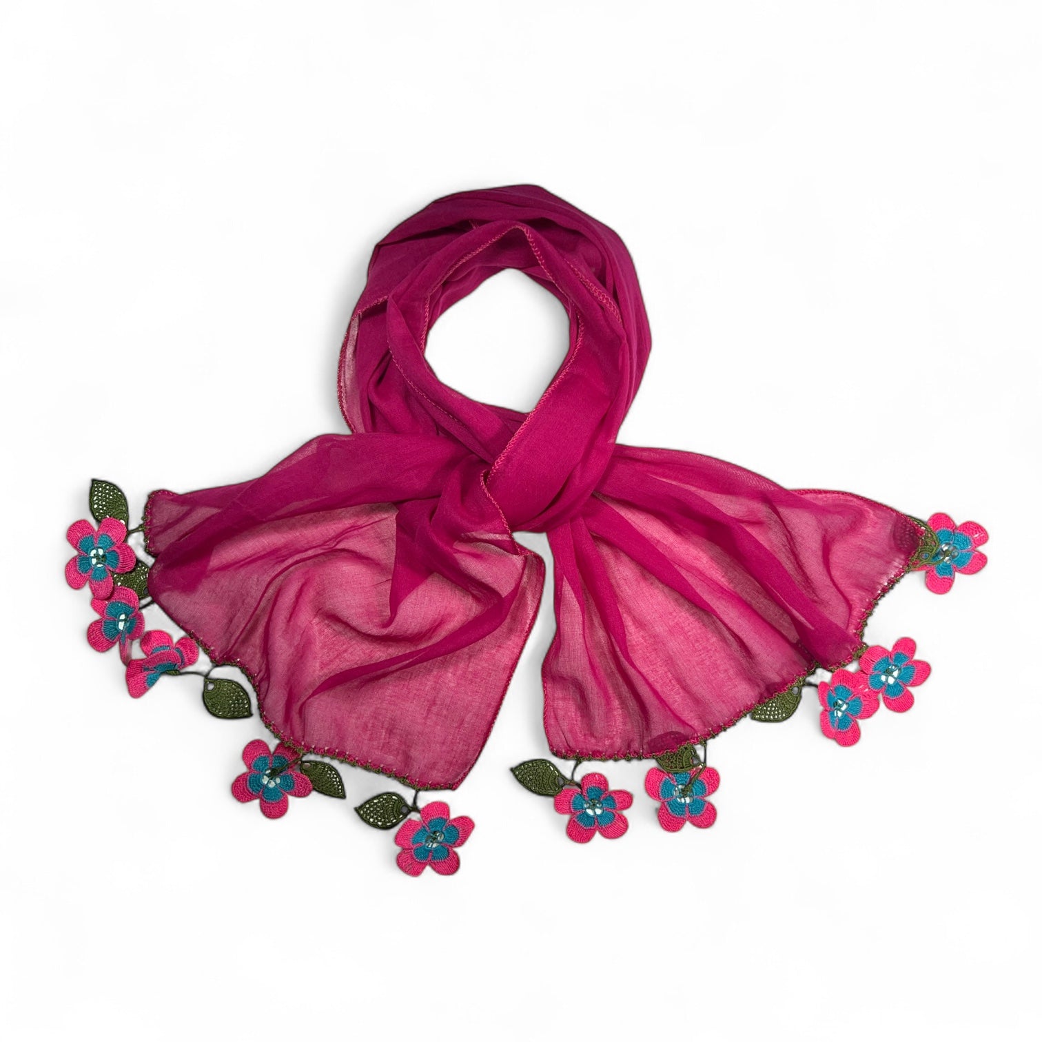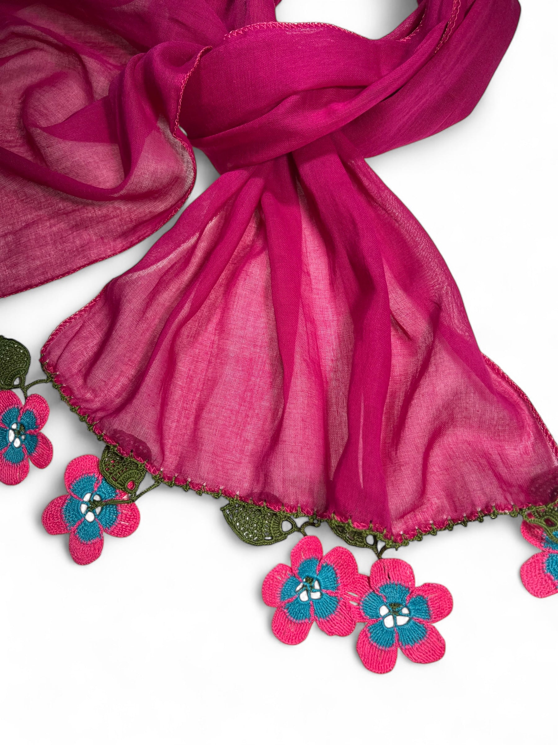 Bu pamuklu fular, el emeğiyle işlenmiş yonca motifli oyalarıyla özel bir görünüm sunar. Yumuşak ve nefes alabilen dokusu sayesinde her mevsim rahatça kullanılabilir. Canlı renkleriyle sade kıyafetlere enerji ve zarafet katar. Günlük kullanım için ideal olduğu gibi anlamlı bir kültürel hediye olarak da tercih edilebilir.